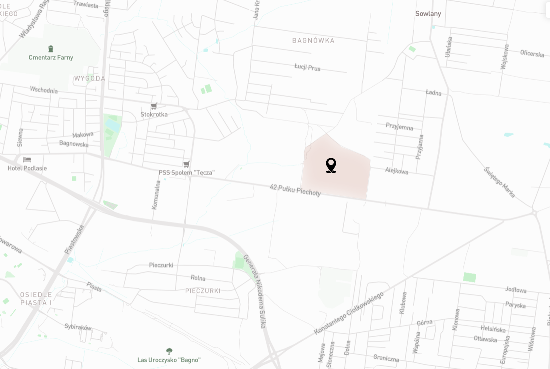 Projekt bloków na osiedlu Bagnówka w Białymstoku zakłada budowę 12 bloków mieszkalnych. Z tego 8 bloków znajduje się od ulicy 42 Pułku Piechoty i są one połączone w parterze lokalami usługowymi, tworząc nieprzerwaną pierzeję. Natomiast 4 bloki usytuowane są przy lesie. Projekt został wykonany w grupie trzyosobowej.